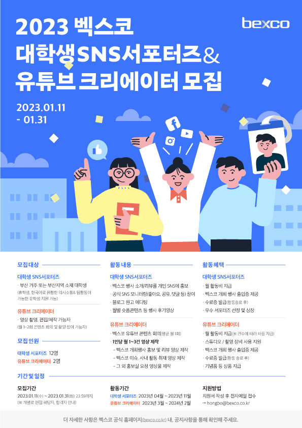 ○ 이메일: hongbo@bexco.co.kr ○ 담당자: 벡스코 홍보실 (051-740-7374 안보경 과장)