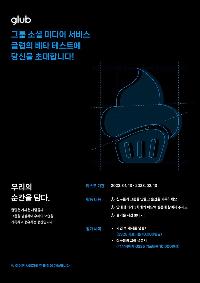 그룹 소셜 미디어 서비스 glub 글럽 앱 베타 테스터 모집