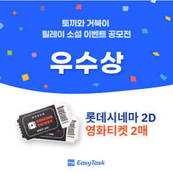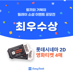 정해진 분량과 기준을 토대로 작성하였는가 소설 속에 이지태스크/협업 등의 키워드가 잘 녹아들었는가 재미 혹은 감동 등의 감정적 요소가 포함되었는가 위와 같은 기준을 토대로 내부심사를 통해 당선될 예정입니다.