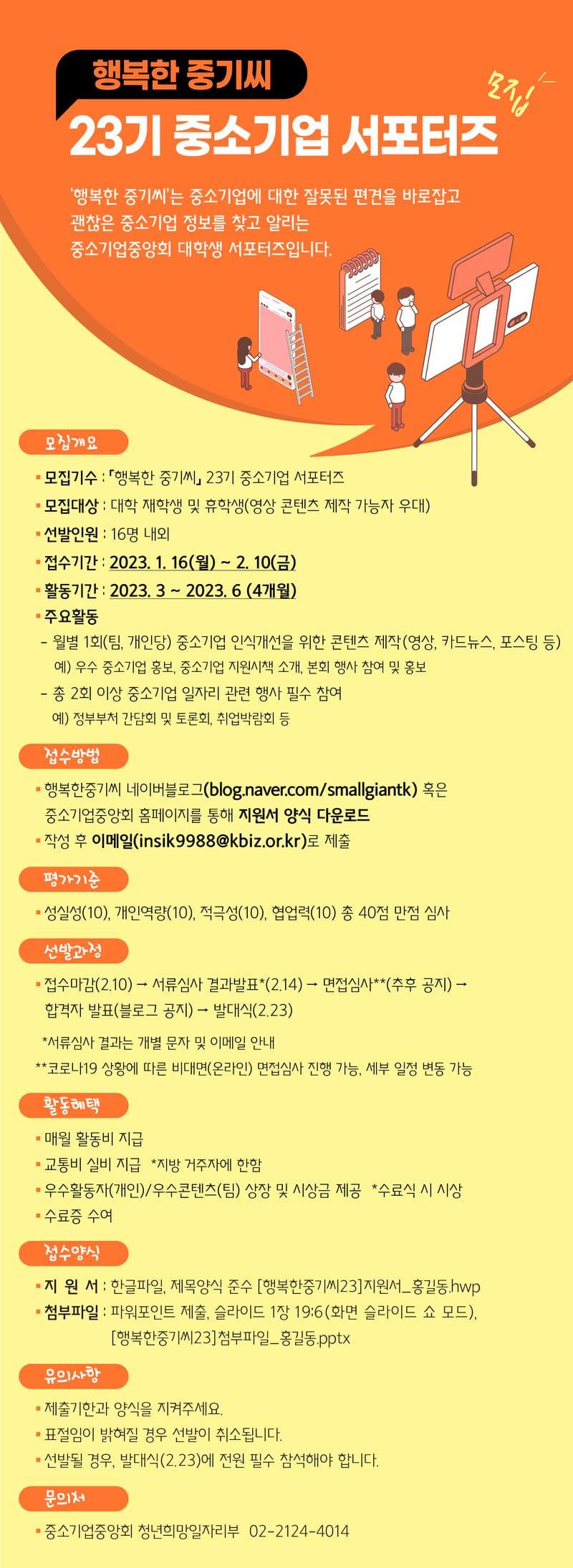 중소기업중앙회에서 「행복한 중기씨」 23기 중소기업 서포터즈를 모집합니다.