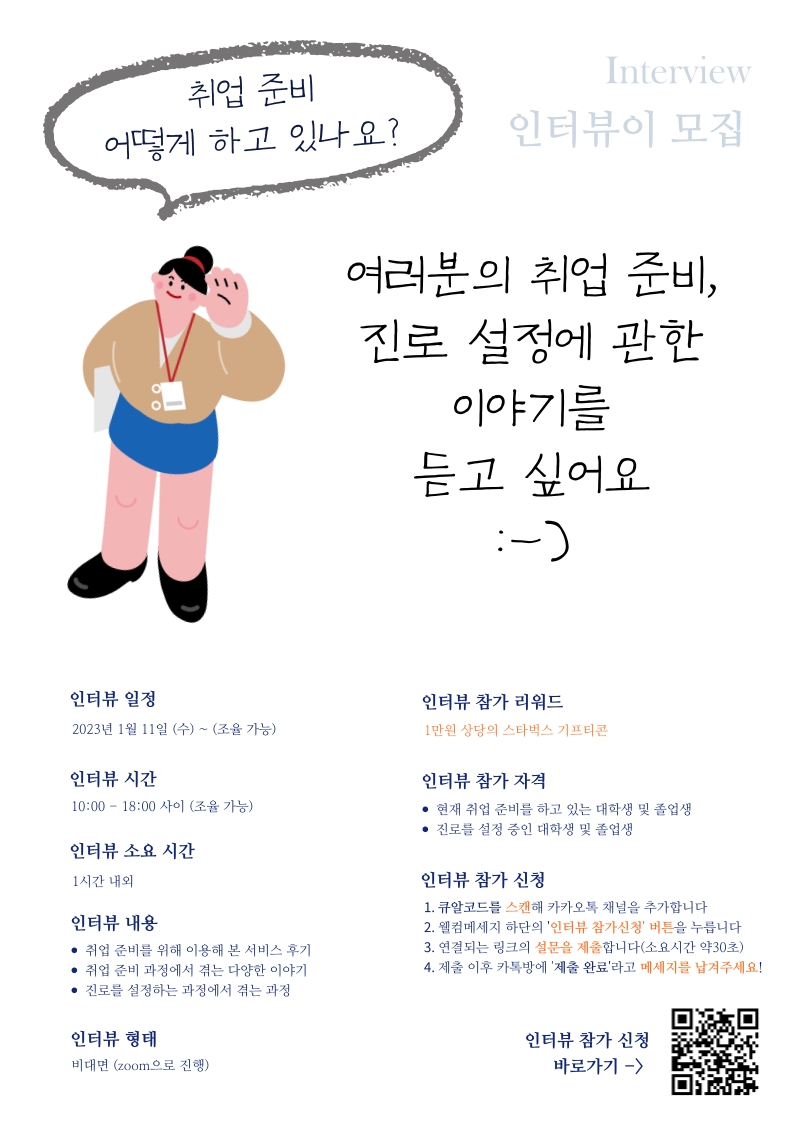 ✅ 인터뷰 예상 시간 : 1시간 내외 (비대면 zoom으로 진행)