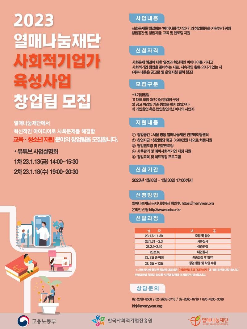 열매나눔재단에서 '2023 사회적기업가 육성사업'의 초기창업팀을 모집합니다.