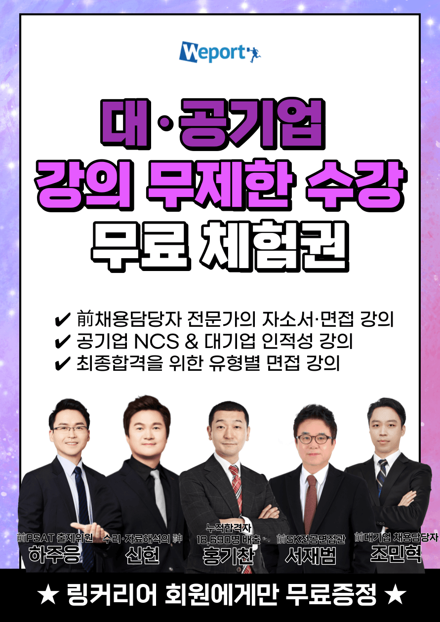 ■ 이벤트혜택 : <대·공기업 취준강의 무제한 수강 3일 무료 체험권>