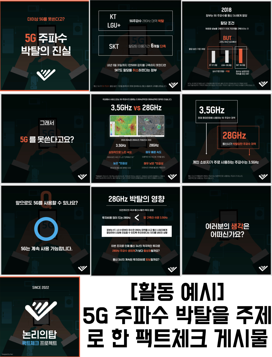 활동 내용 ✅ 팩트체크 - 오해할 수 있는 부분 "간단히" 바로잡아 기사내용 보충 - BBC 등의 외신의 보도 소개 - 국내 언론사에서 보도하지 않은 사항 알리기 - 오피니언 리더 혹은 사이버렉카 역할을 하는 유튜버들에 대한 간단한 팩트체크 - 유튜브 쇼츠 등 이용해 짧은 영상 제작 - 블로그 등의 플랫폼 이용해 간단한 칼럼 업로드