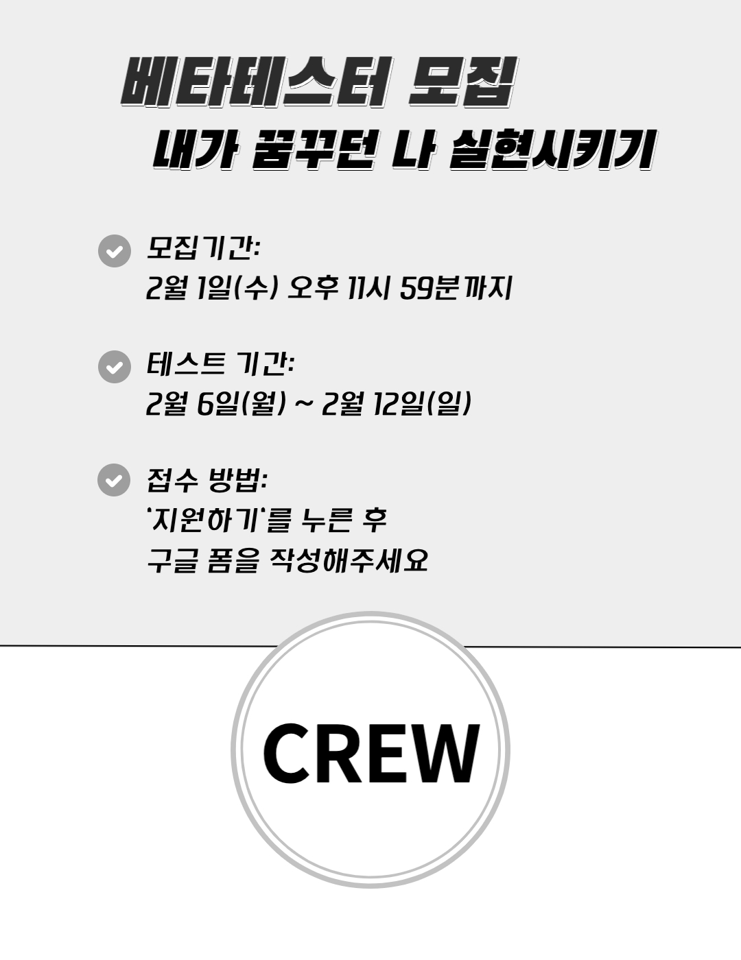 크루의 베타 테스트에 참여해 주실 분들을 모집합니다!