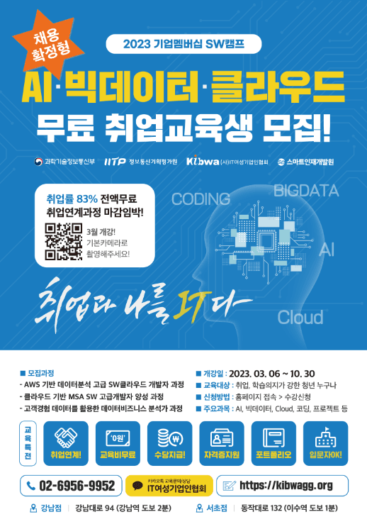 AWS 기반의 빅데이터, AI 융합 분야 SW기업에 취업을 희망 하는 교육생을 모집합니다.