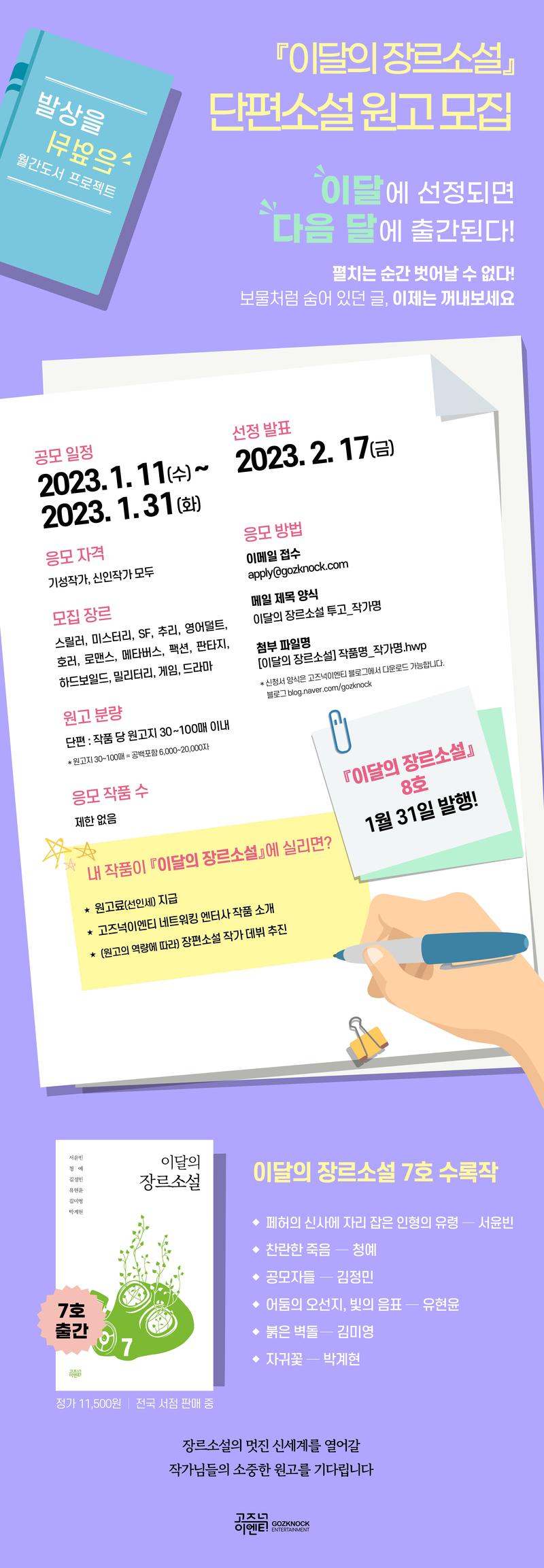 2023년 1월 고즈넉이엔티 이달의 장르소설 단편소설 공모전
