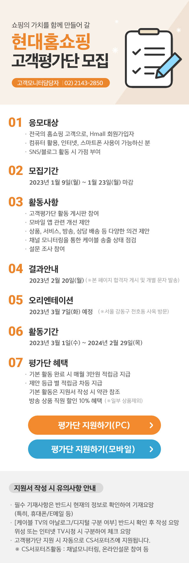 현대홈쇼핑 2023 고객평가단 모집