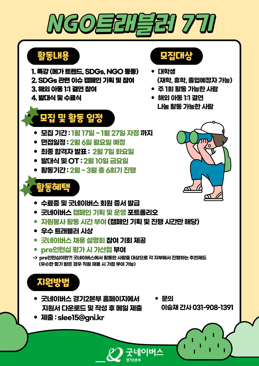 굿네이버스 경기2본부에서 💚NGO 트래블러 7기💚 를 모집합니다!