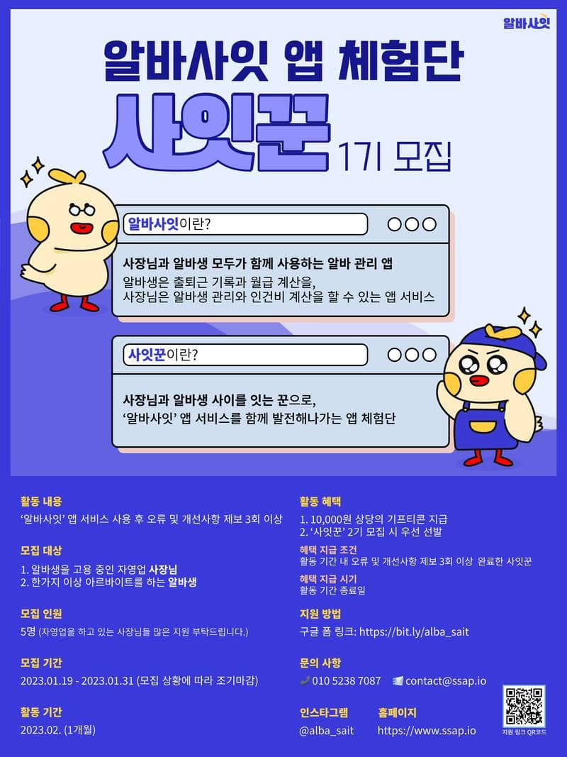 인스타그램 @alba_sait 홈페이지 https://www.ssap.io/