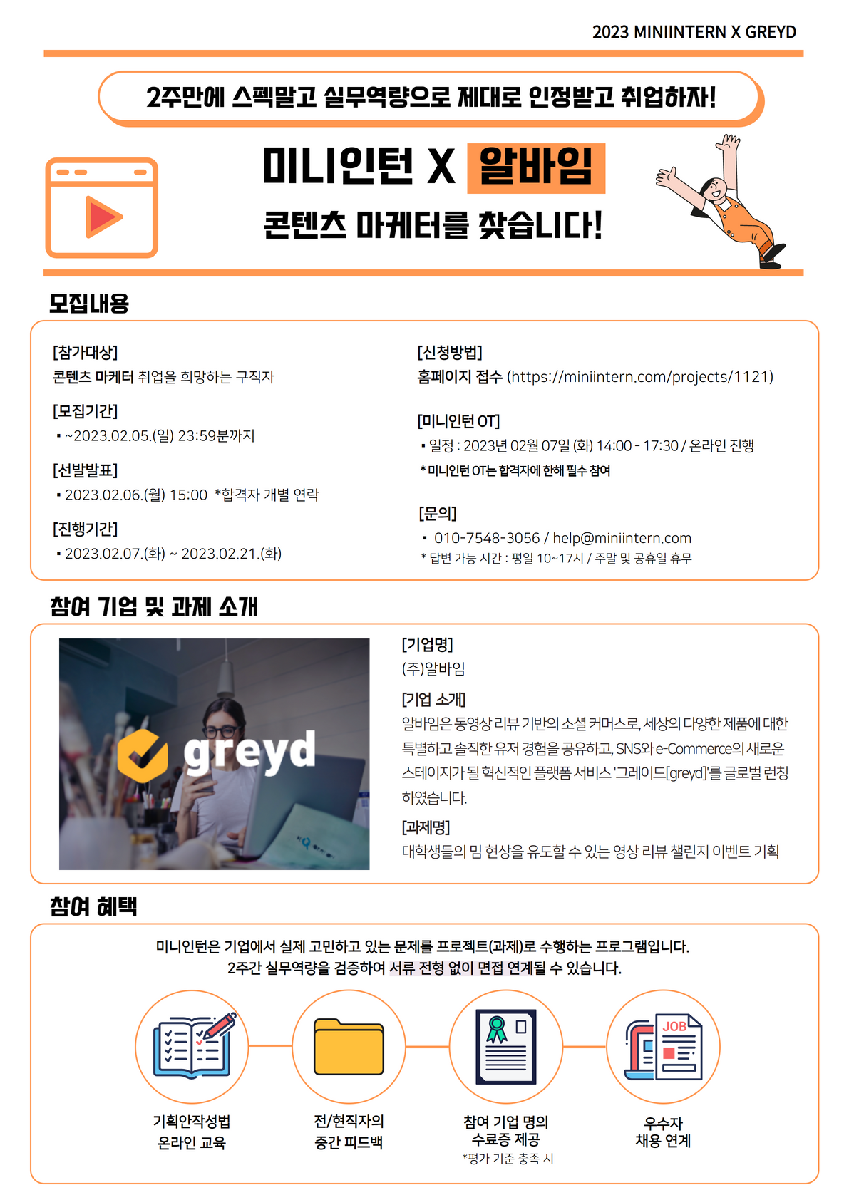 미니인턴 신청 : https://bit.ly/3XBizM0