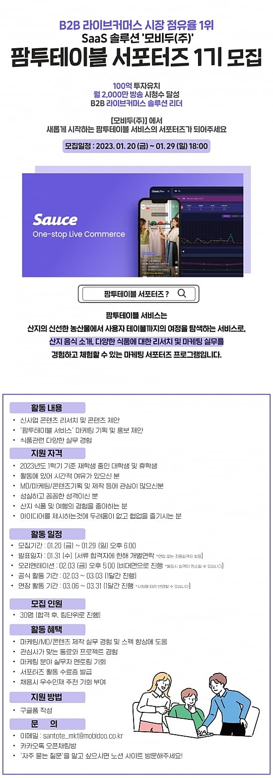 [모비두(주)] 에서 새롭게 시작하는 팜투테이블 서비스의 서포터즈가 되어주세요💕