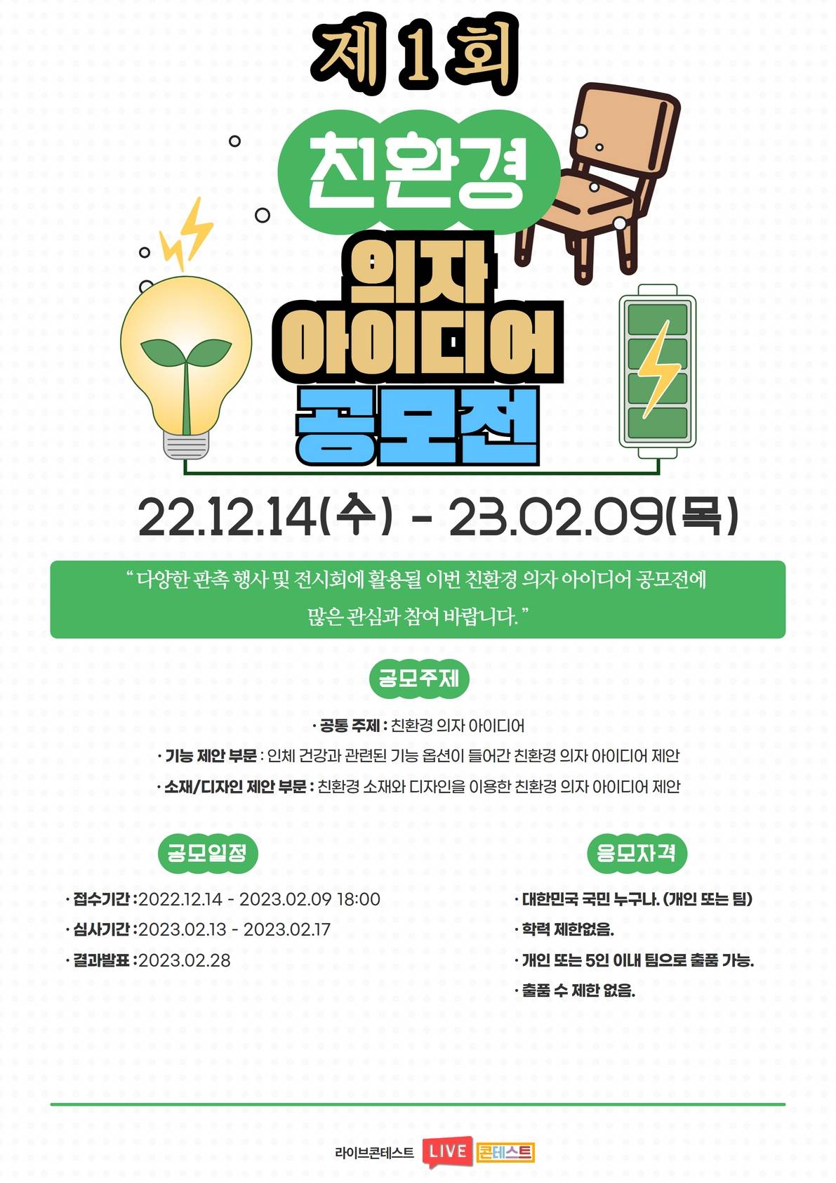 *이메일 제목 양식 : 제1회 친환경 의자 이이디어 공모전 팀명(의자팀) 제출