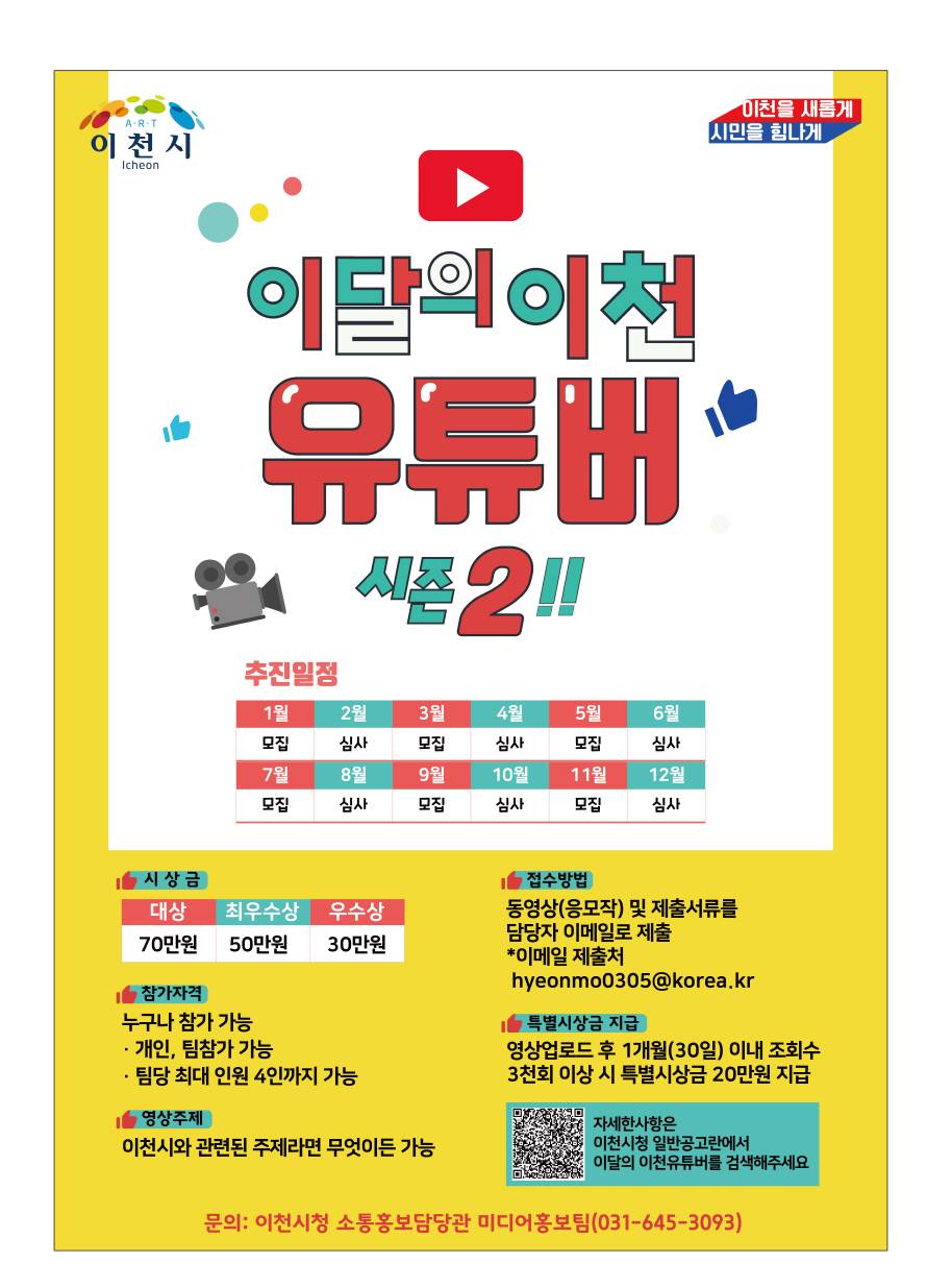 이달의 이천 유튜버 시즌2 영상모집합니다.