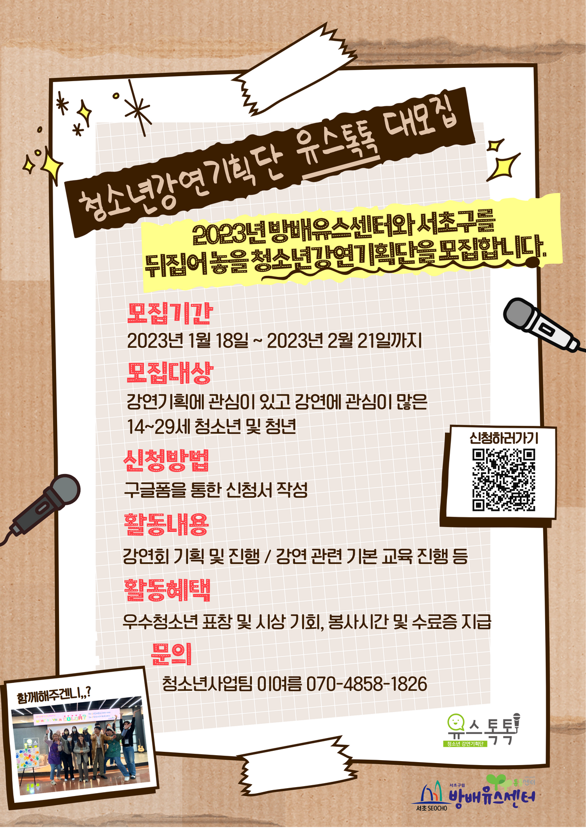 문의 : 방배유스센터 청소년사업팀 070-4858-1826