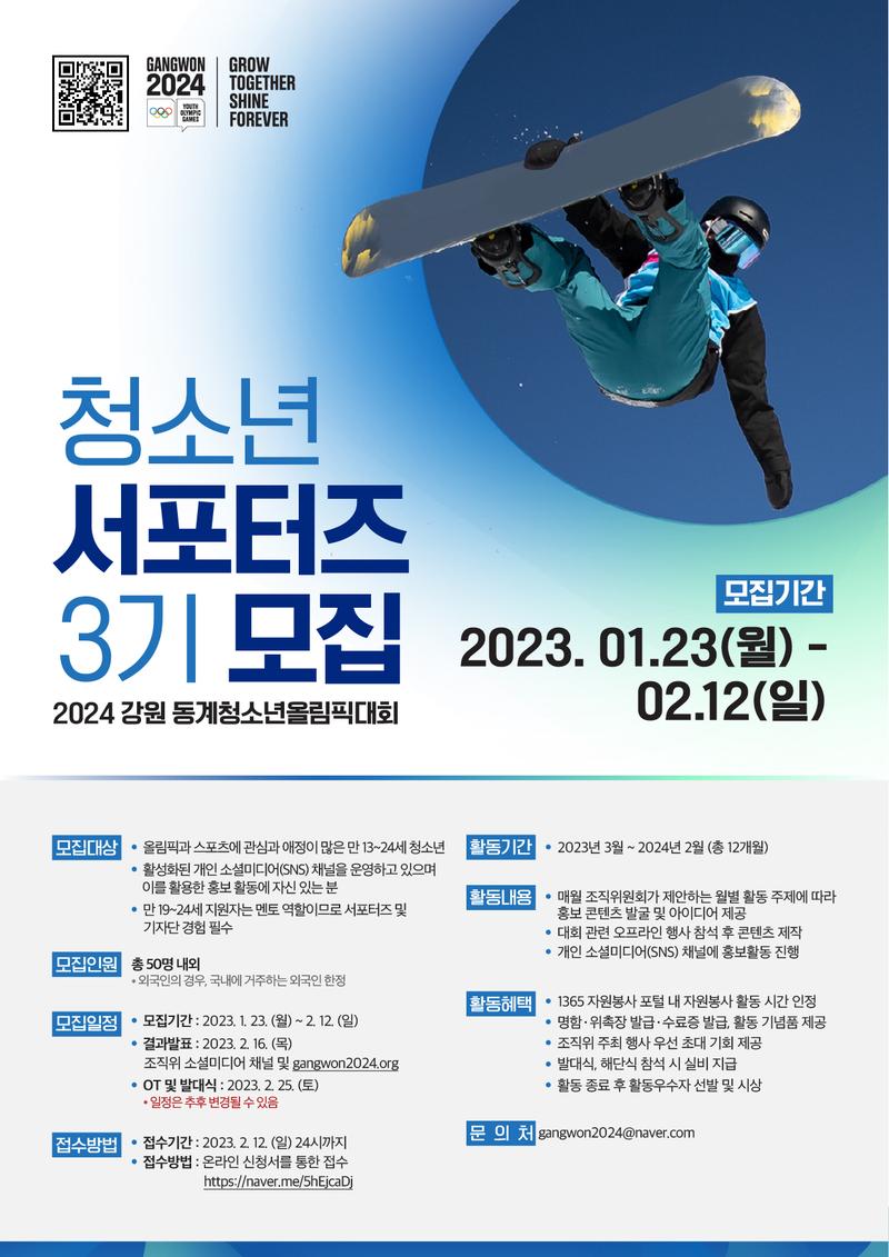 🙋청소년 서포터즈가 되고싶으신 분!!🙋 ✨드디어, 2024 강원 동계청소년올림픽대회 청소년 서포터즈 3기 모집이 시작됐습니다✨