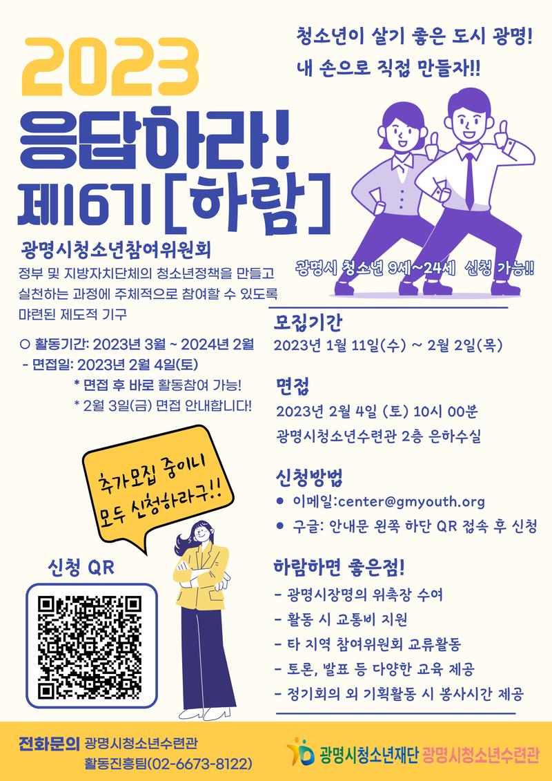 ♥2023년 제16기 광명시청소년참여위원회[하람] 신규위원을 모집합니다♥