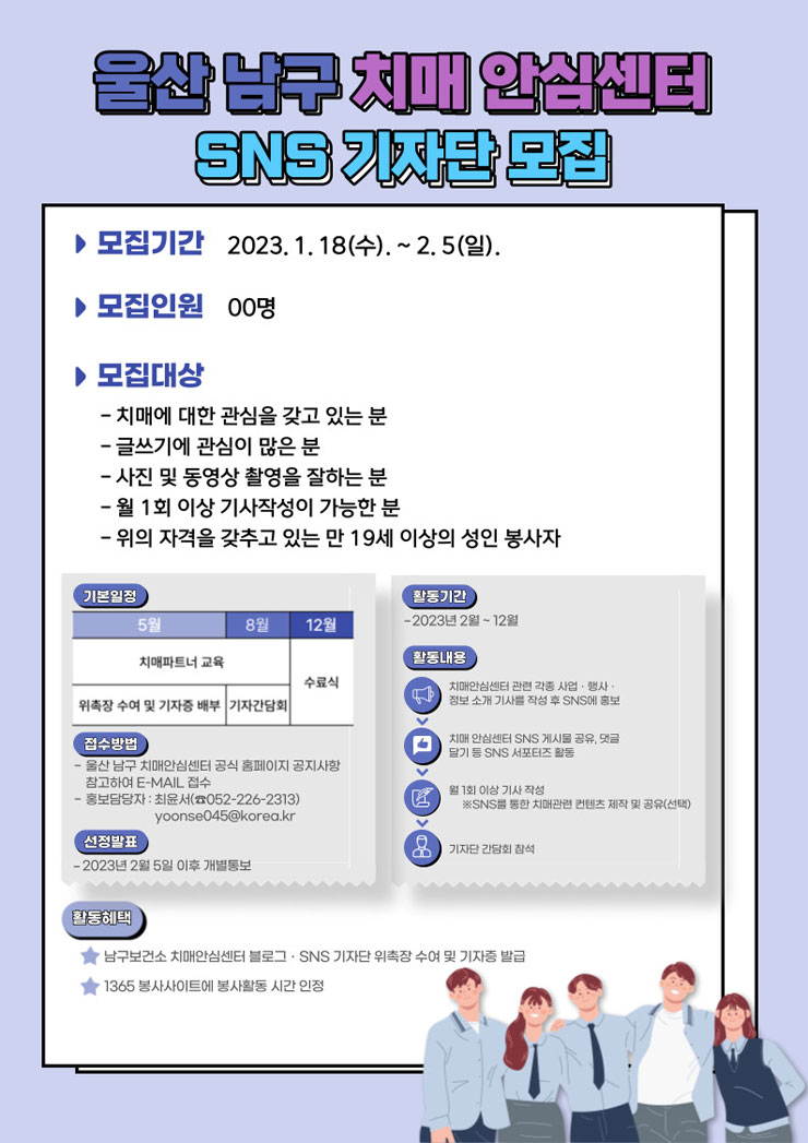 2023년 울산 남구 치매안심센터 제4기 SNS 블로그 기자단 모집