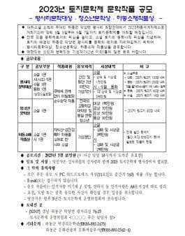 [발표 및 시상] : 당선작은 심사위원의 심사평과 함께 2023 토지문학제 행사장에서 발표함.
