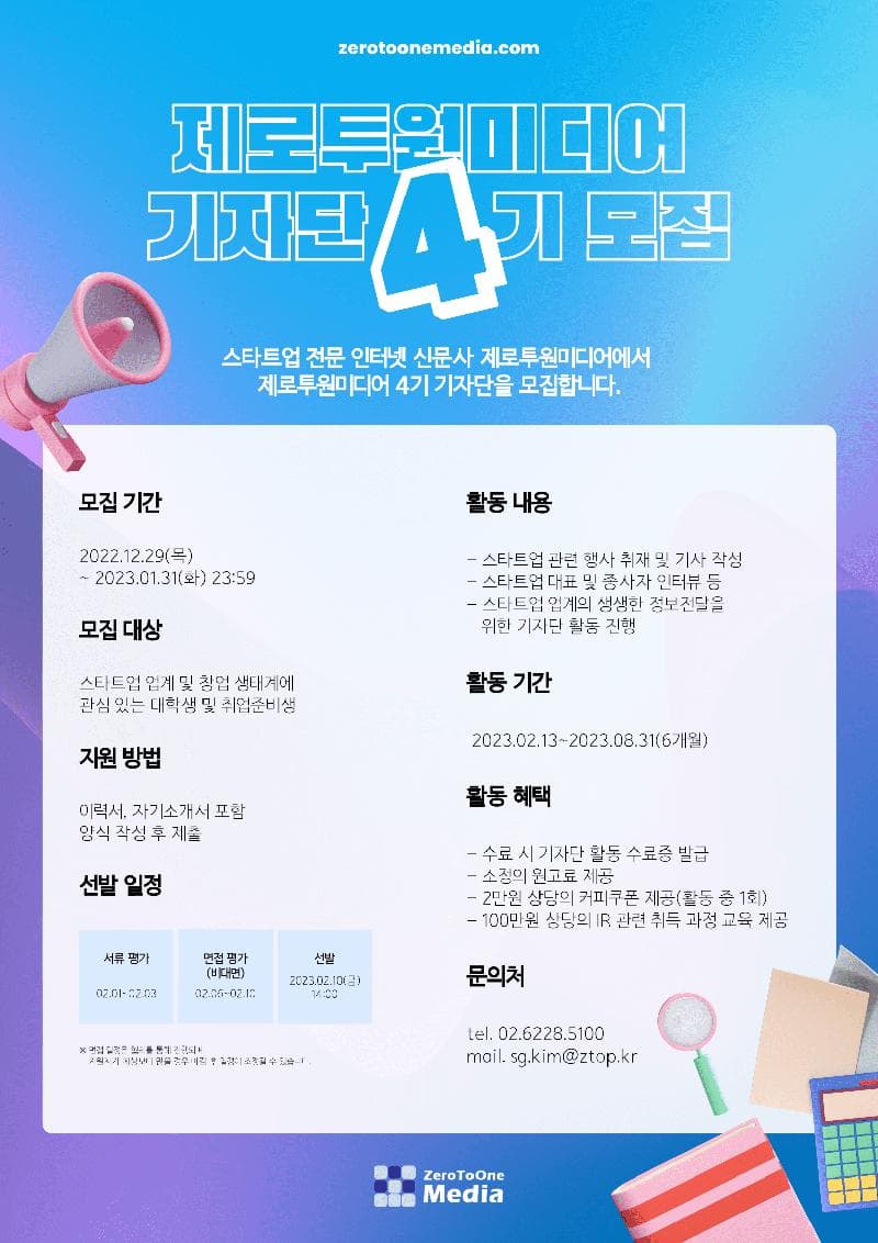 제로투원미디어에서 기자단 4기를 모집합니다!
