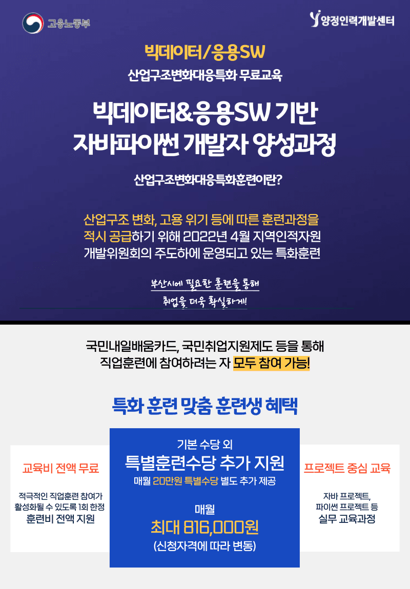 산업구조변화대응특화훈련 자바&파이썬 빅데이터 과정을 진행합니다 :)