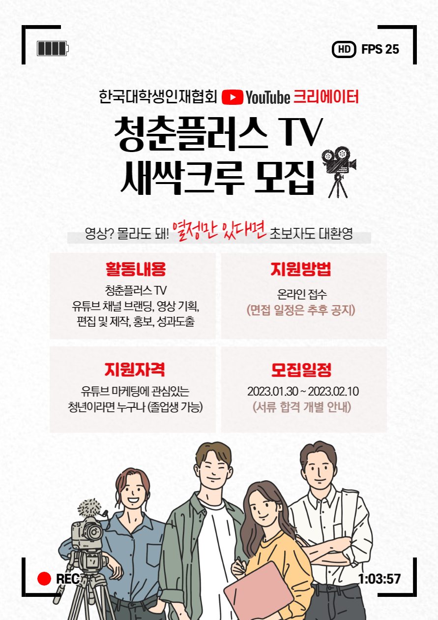 ▶ 주최사 / 활동명 : 한국대학생인재협회 / 청춘플러스 TV 유튜브크리에이터
