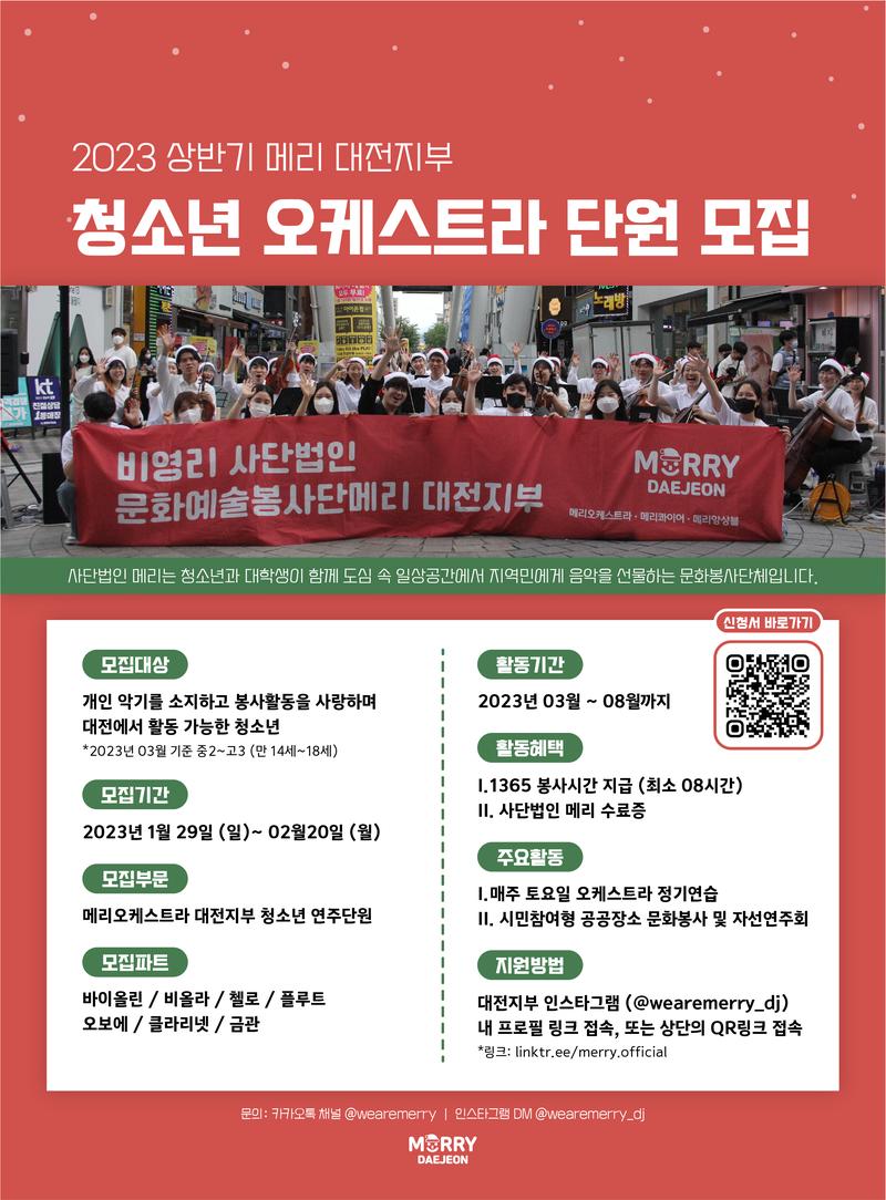 🎅🏻 지원방법 : https://linktr.ee/merry.official 접속 후 "2023 상반기 대전지부 단원 모집"클릭!