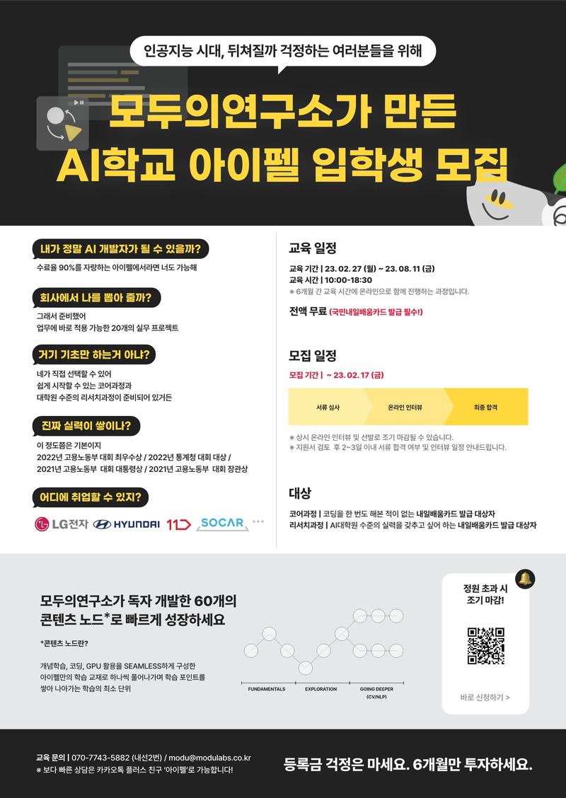 AI 학교 아이펠(AIFFEL), 뭐가 특별할까요? [1] 20여 개의 프로젝트로 배우며 실무 능력 UP↗ [2] 카카오, LG 전자 등 전문 크리에이터들이 만든 스토리 기반의 재밌는 콘텐츠 학습 [3] 복잡한 리눅스 설치 없이 바로 코딩 실습 가능한 교육 플랫폼 제공