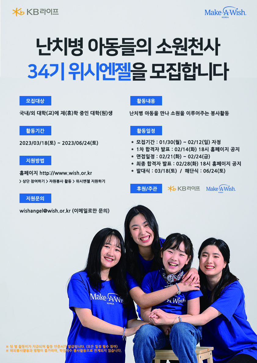 난치병 아동들의 소원천사 「34기 KB 위시엔젤」을 모집합니다.