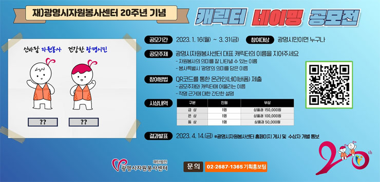 재)광명시자원봉사센터 20주년 기념 캐릭터 네이밍 공모전