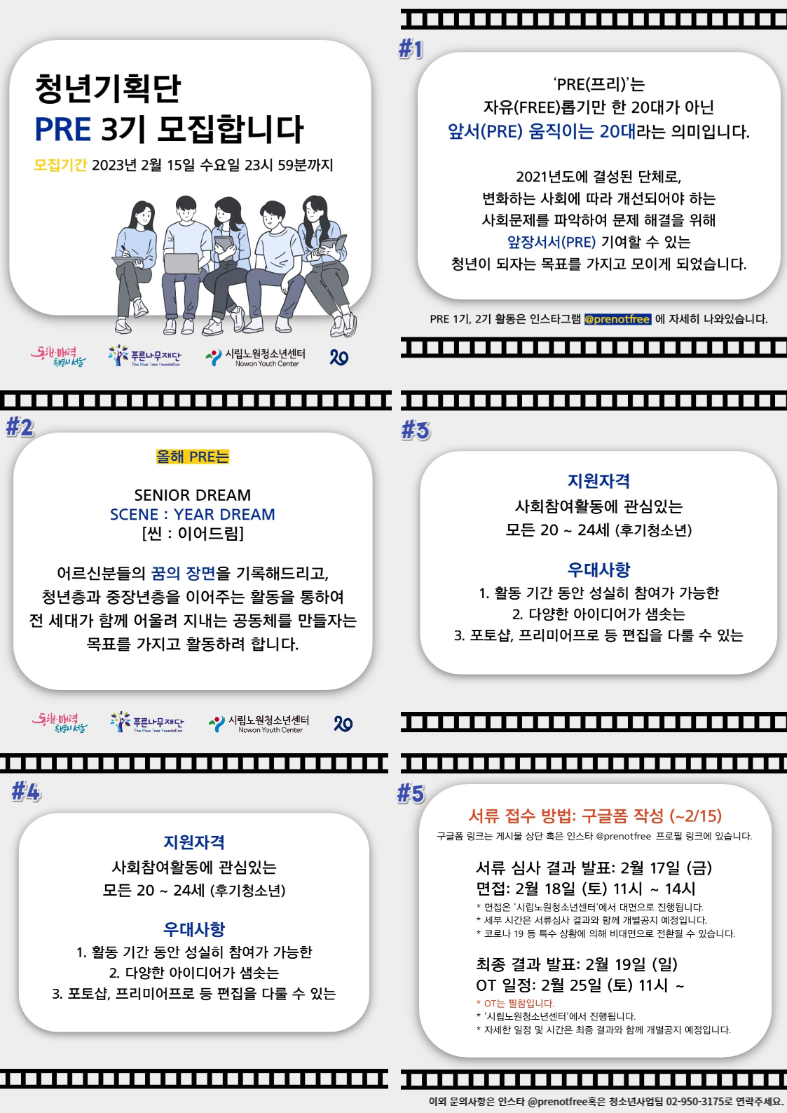 - ☏ 문의사항은 인스타그램 @prenotfree 또는 청소년사업팀 02-950-3175로 부탁드립니다.