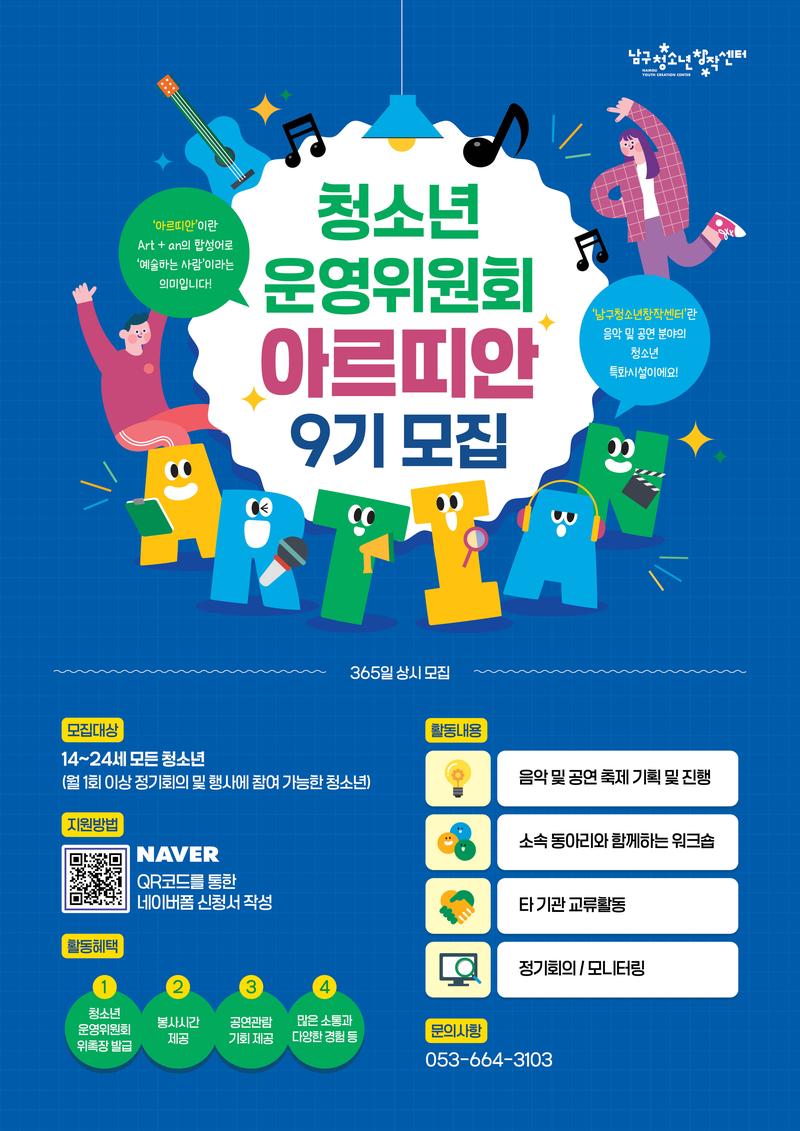 🌟남구청소년창작센터 청소년운영위원회 '아르띠안' 신규위원을 모집합니다🌟