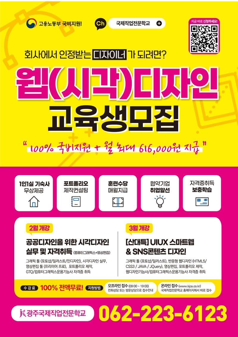 - 온라인수강신청 및 문의 : http://jd.kjca.co.kr (자세히 보기) - 방문/전화 상담 : 광주광역시 북구 호동로 6-6 (062-266-6617)