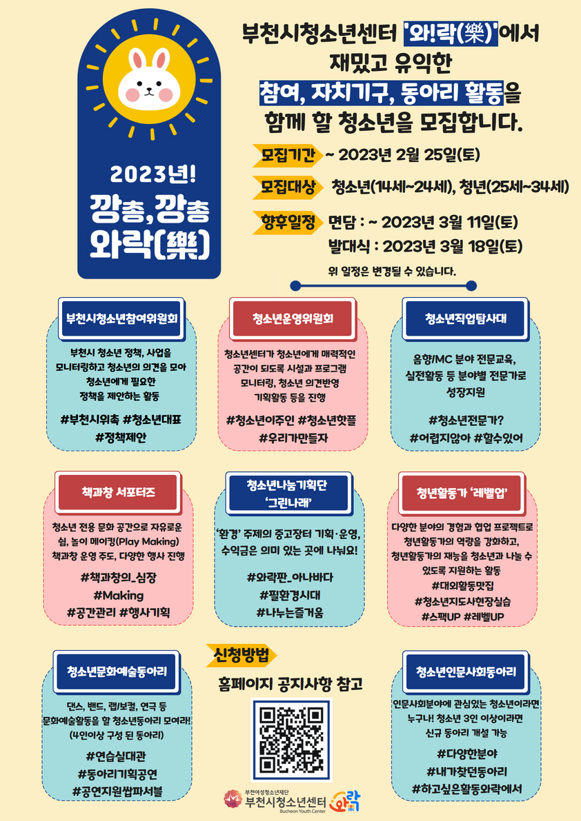 2023년도 부천시청소년센터 '와!락(樂)'에서 재밌고 유익한 청소년 참여자치기구, 동아리 활동을