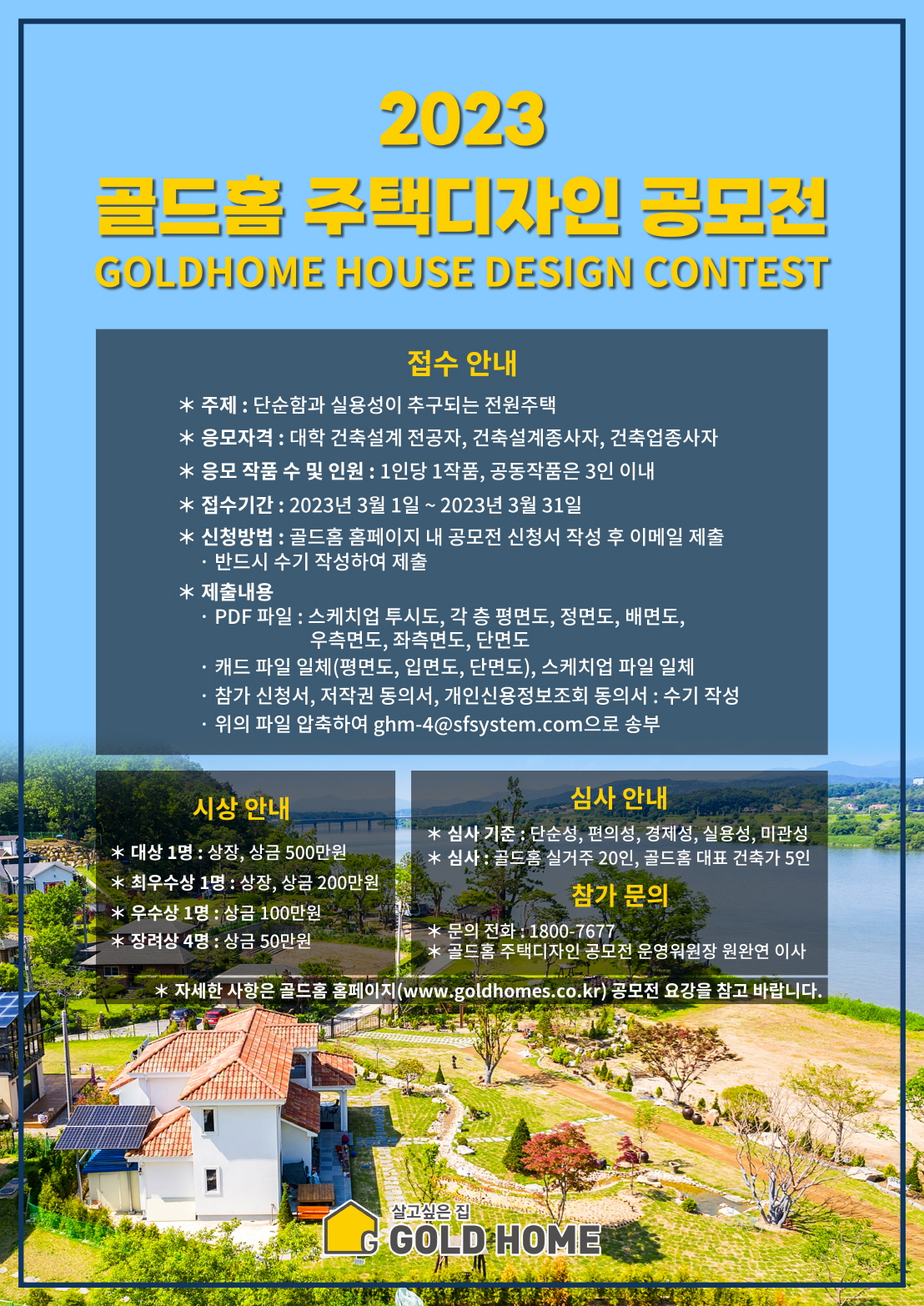 - 자세한 사항은 골드홈 홈페이지 공모전 모집 요강을 참고바랍니다.