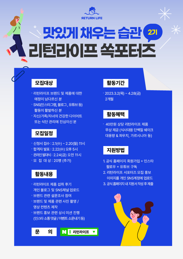 ✔ 활동 기간 중 동종업계(다이어트 카테고리 식품)의 타 브랜드 서포터즈 (체험단/협찬 포함) 활동이 겹치지 않는 분