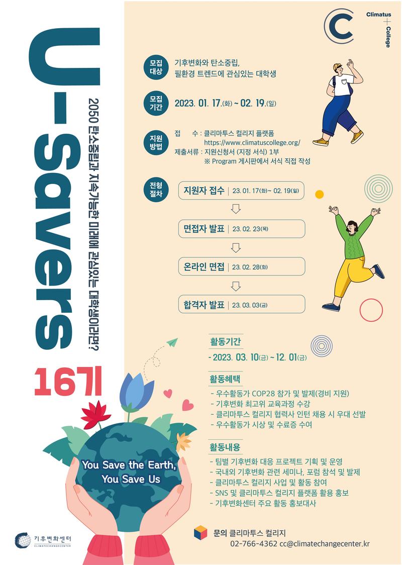 "대학생 기후 활동가 U-Savers 16기 모집"