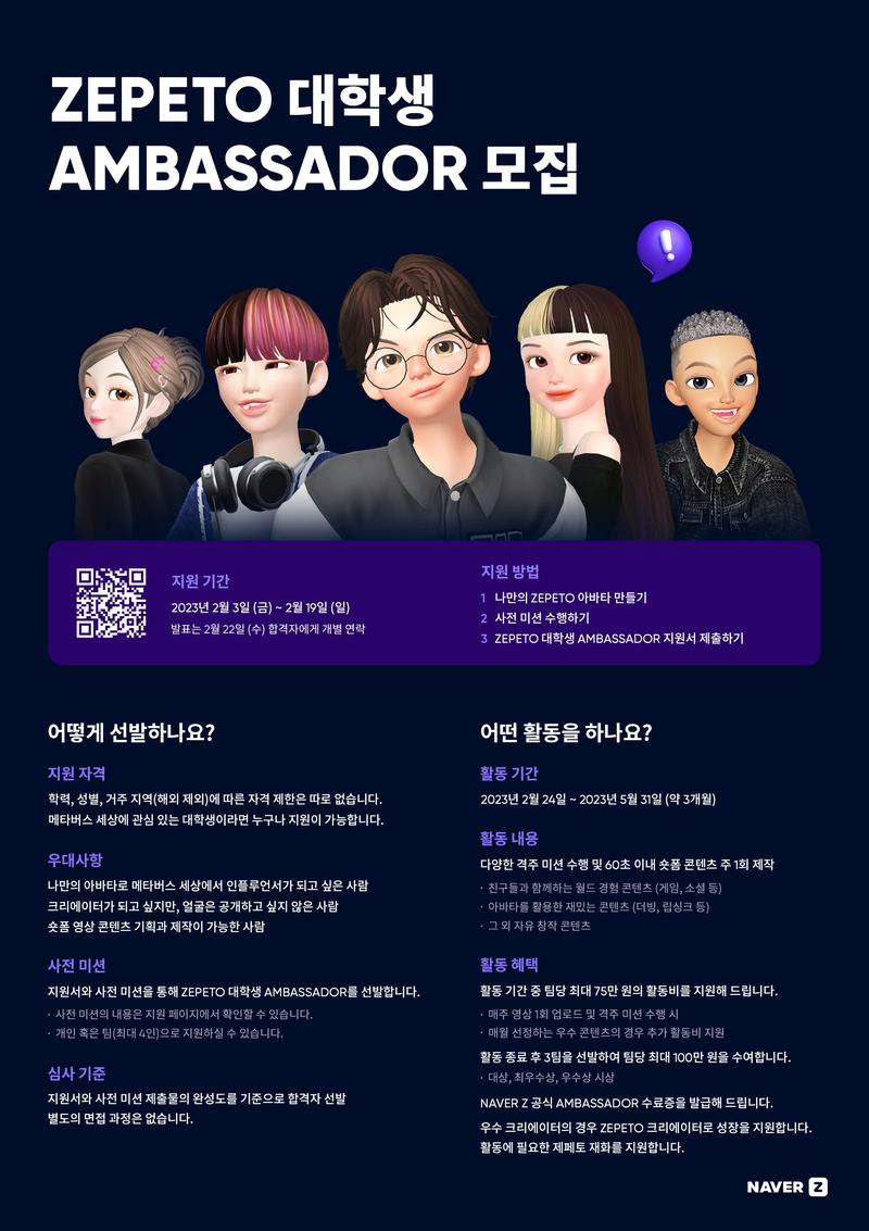NAVER Z ZEPETO 대학생 AMBASSADOR 모집