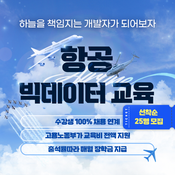 항공 빅데이터 관련 교육이란? 항공기 헬기에 설치하는 내비게이션과 블랙박스에 저장되는 데이터를 수집 및 처리하고 플랫폼 개발, 분석 등을 할 수 있는 시스템을 개발하는 교육