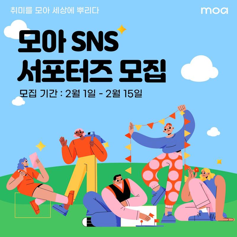 모아와 더불어 즐겁고 건강한 모임 문화를 주도해 나갈 모아 서포터즈 1기를 모집합니다.