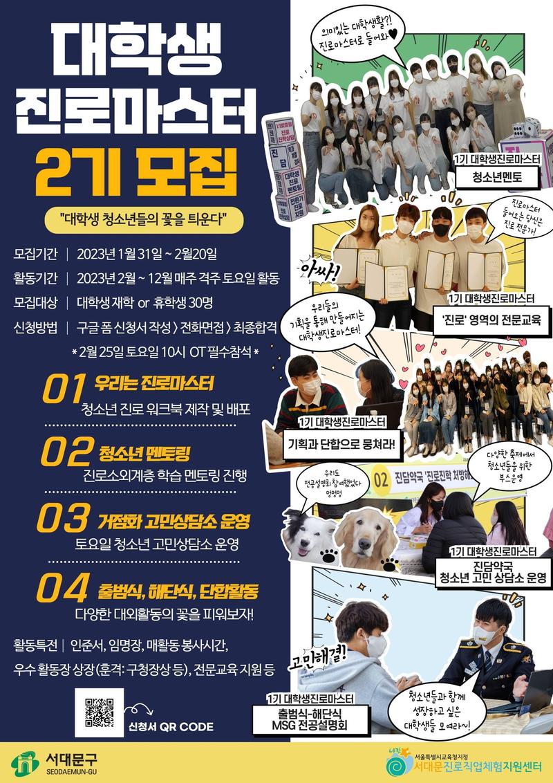서대문구 청소년들을 위한 1:1 맞춤형 진로·진학 컨설팅 진(로를)담(다) '진담' 대학생 멘토가 되어서 청소년들의 진로 고민을 해결하는 대외 활동을 함께 만들어 나갈 대학생진로마스터를 모집합니다 (≧∇≦)ノ