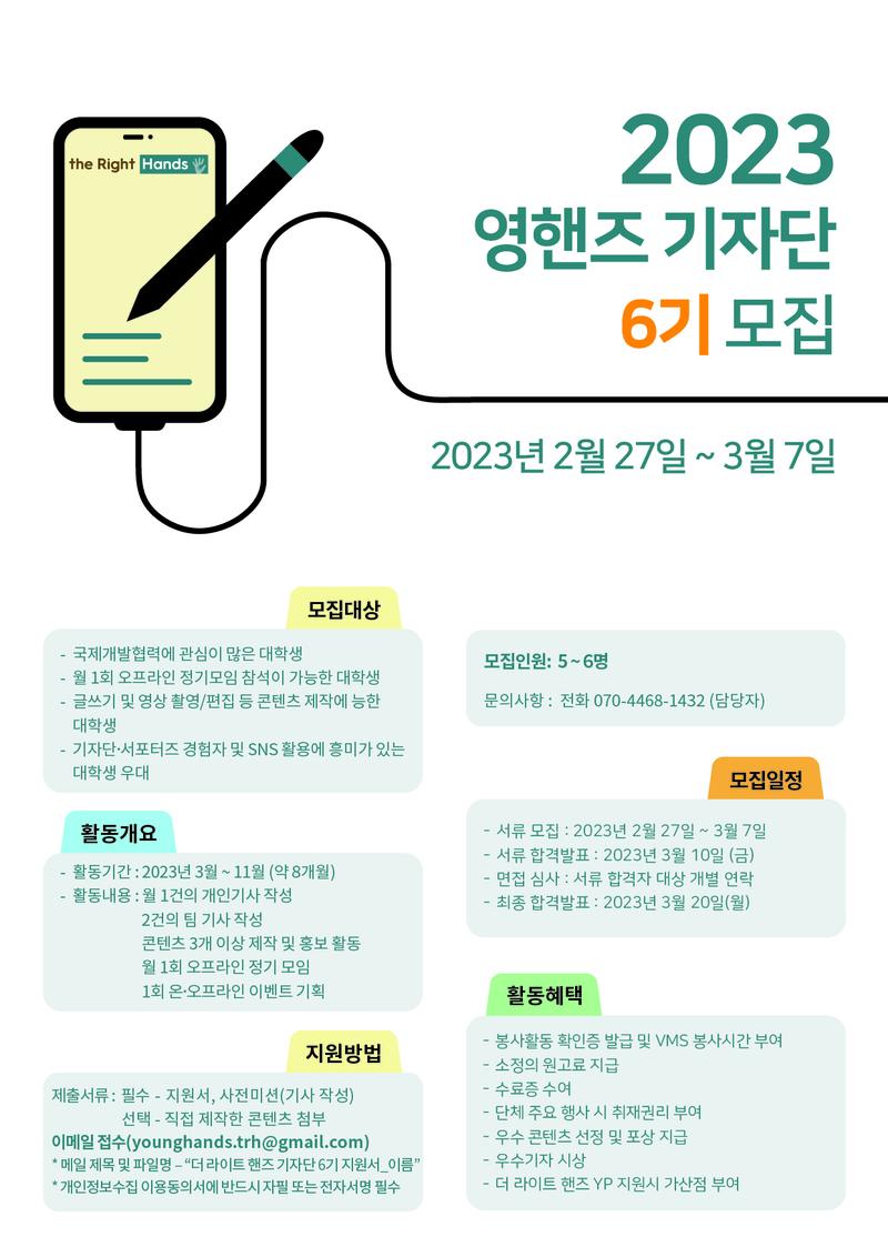 - 메일 제목 및 파일명 : 더 라이트 핸즈 기자단 6기 지원서_이름