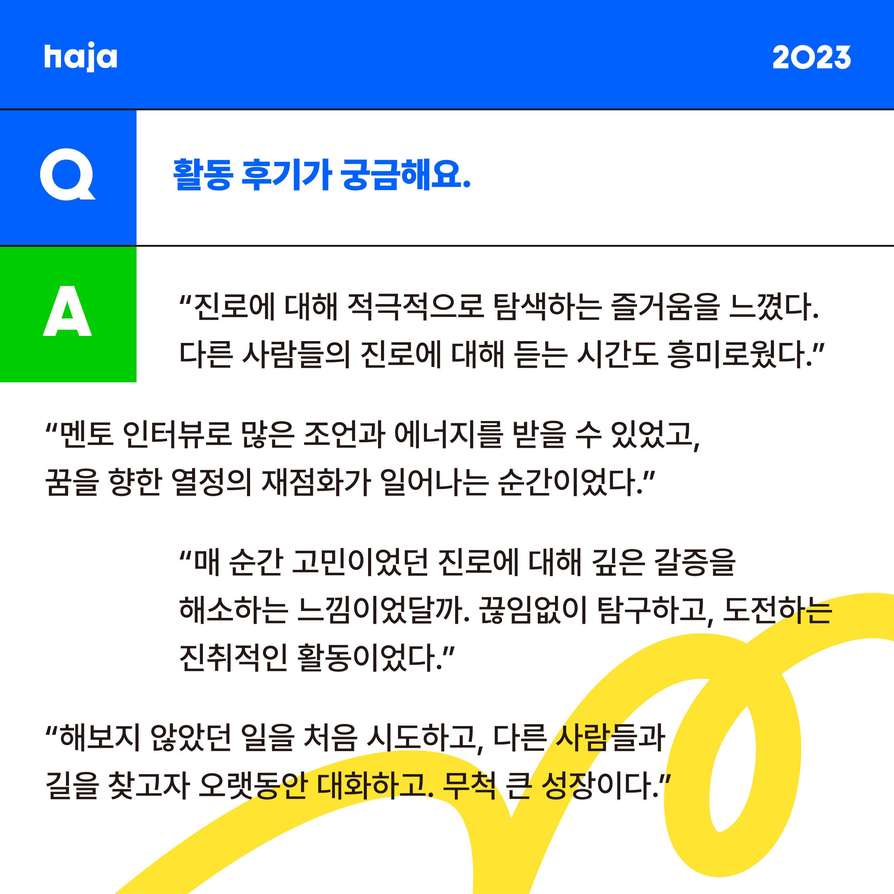 ✔️ 학교/학원 밖에서 진로에 대해 같이 고민할 수 있는 또래를 만나고 싶은 청소년