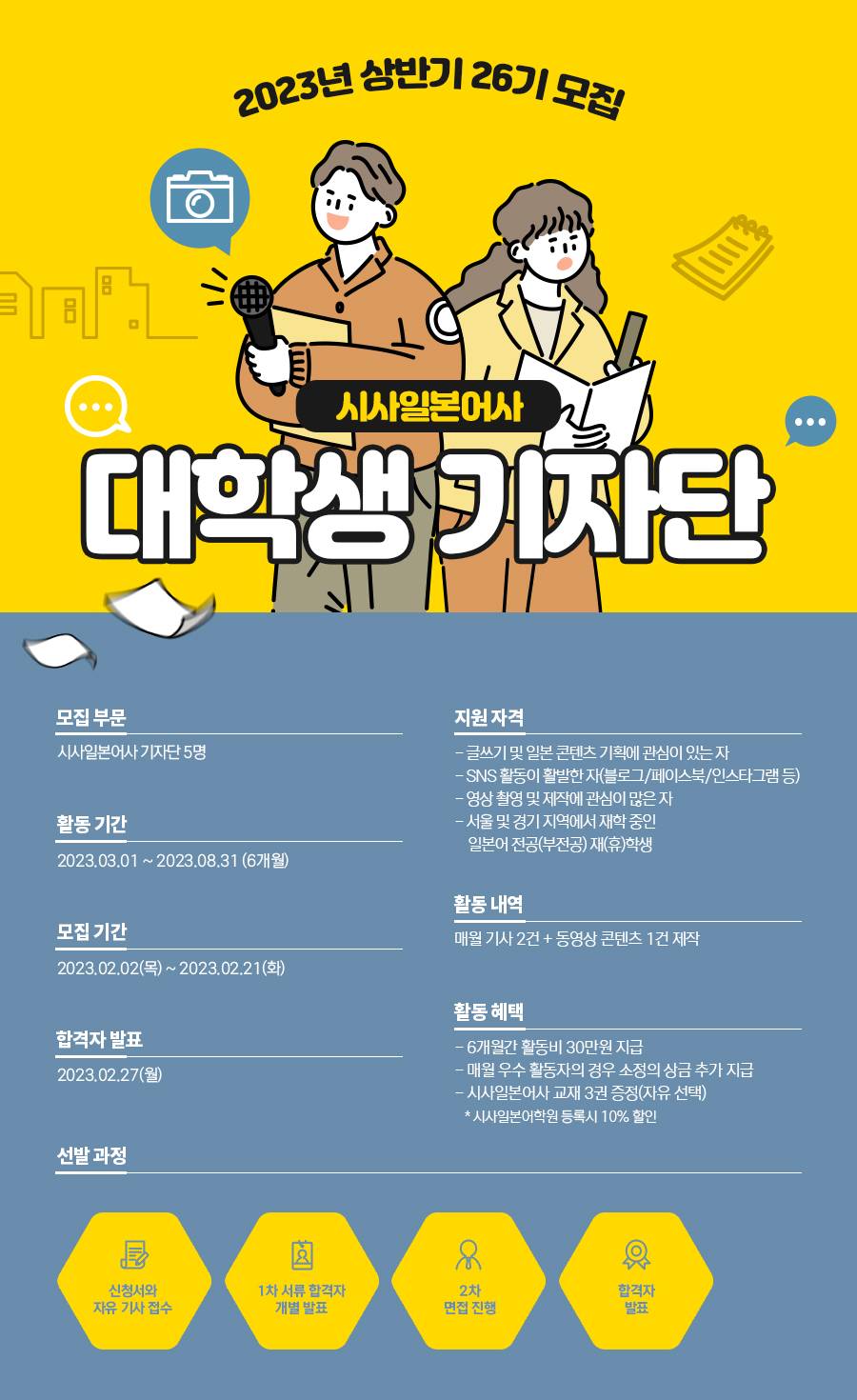 일본어/중국어 전공 대학생들의 많은 관심과 함께 오랜 시간 이어져온 2023년 상반기 시사일본어,중국어사 기자단 26기 모집이 드디어 시작되었습니다-!!!!! 자세한 사항은 아래 포스터에서 확인 부탁드리며 신청서와 함께 제출할 자유 기사의 경우 구글 신청폼 맨 마지막에 안내되어 있습니다 :) 추가 문의사항은 댓글이나 메일로 남겨주세요. 많은 참여와 관심 부탁드립니다-! 아래 구글폼으로 신청해주세요! ↓↓↓↓↓↓↓↓↓↓↓↓↓↓↓↓↓↓↓↓↓↓↓↓↓↓↓↓↓↓↓↓↓↓↓↓↓↓↓↓↓ https://docs.google.com/forms/d/1cP25UW-Yhat0FPIBPvg6smoTbSQYmGvjyl9aElzQ18M/edit