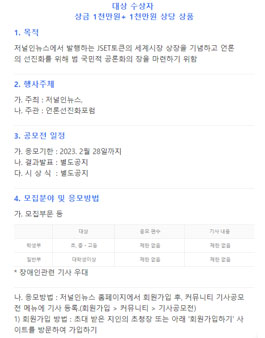 1) 동상이상 수상자에게는 저널인뉴스 인턴기자 자격부여