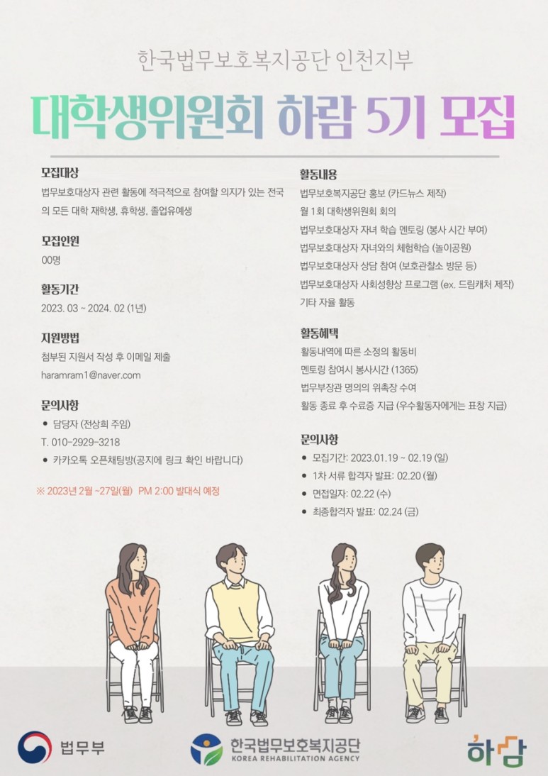 한국법무보호복지공단 인천지부 대학생위원회 하람 5기 모집