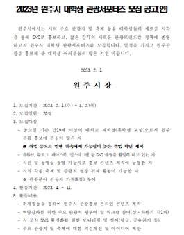 2023년 원주시 대학생 관광 서포터즈 모집