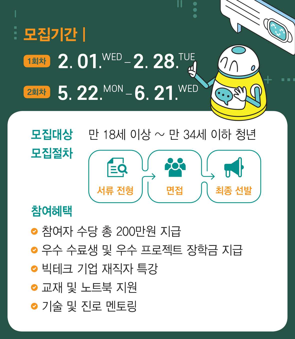 ✅ 모집기간: 1회차: 2.01(수) \~ 2.28(목) 2회차: 5.22(월) \~ 6.21(수)