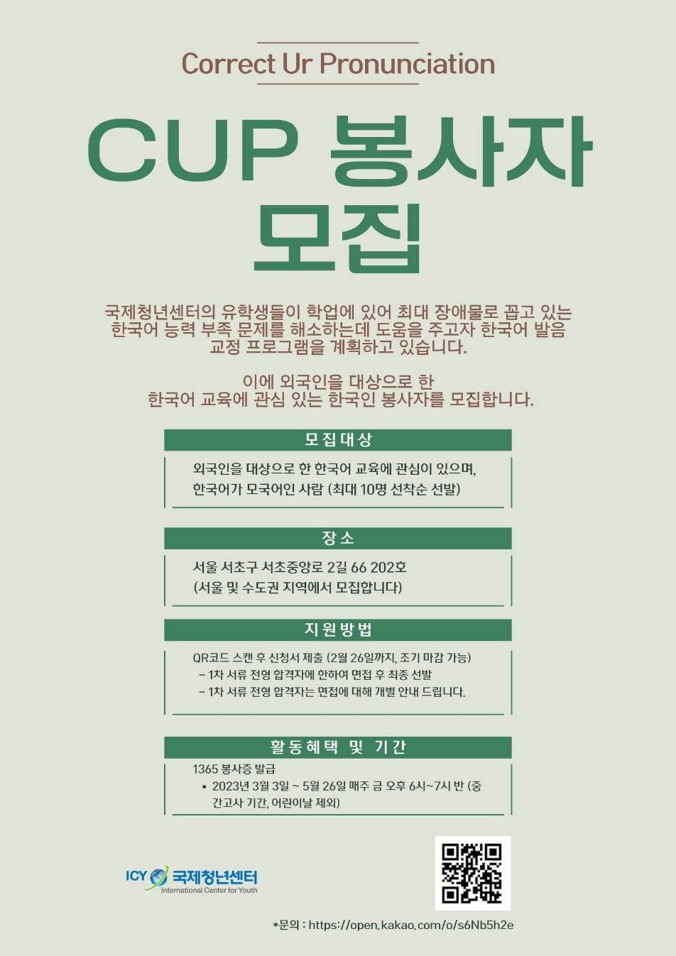 '한국어 발음 교정 프로그램' 봉사자 모집