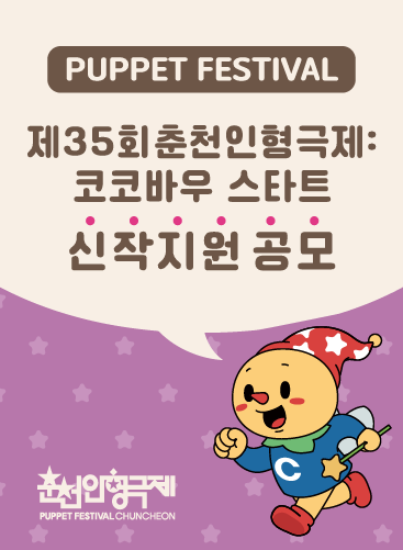 2023년 개최되는 [제35회 춘천인형극제 : 코코바우 스타트]에서 신작지원작을 공모합니다. 관심있는 분들의 많은 신청 부탁드립니다.